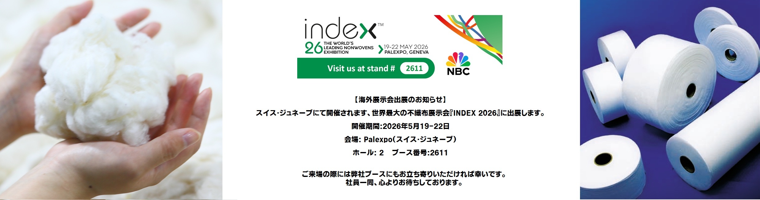 当社の事業は化粧綿をはじめ、綿棒、お茶パック等の一般向け綿商品の生産・販売・医薬品分野での脱脂綿・清浄綿、そして不織布分野においては繊維関連の世界で他に類を見ない技術開発によりコットン100%の不織布「ミラクルコットン」の製造にまで及んでおります。商圏は国内のみならずアジアはもとより欧米にまで拡大しております。
